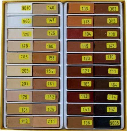 Cire dure de réparation et de restauration pigmentée. Très adhérente, pas de surbrillance après vernissage. Longueur : 80 mm.