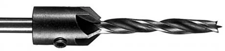 Mèche à bois hélicoïdale avec fraise à lamer 90°. Fraise à lamer utilisable comme butée de profondeur.