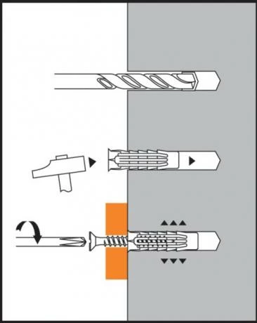 Cheville tout terrain pour matériaux pleins et creux, avec collerette. Possibilité de pose au travers de la pièce à fixer. 6 jambes d’expansion et ailettes anti-rotation empêchant la cheville de tourner dans le trou.