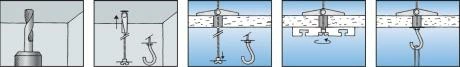 Tige filetée avec crochet, pour différentes épaisseurs de panneaux et longueurs utiles importantes.