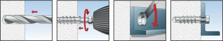 Permet des fixations sans contrainte d’expansion et se visse directement dans le matériau à l’aide de l’outil de pose approprié (non fourni). Permet l’utilisation de vis à bois et de vis métrique de Ø 4 à 10 mm. Installation affleurante.