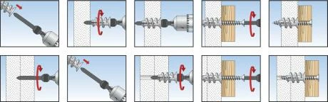 Chevilles pour plaques de carton-plâtre, simples et doubles. Cheville en nylon qui se visse dans le matériau support à l’aide de l’outil de pose fourni dans chaque boîte. Filet tranchant auto-taraudeur permettant une fixation par verrouillage de forme. Adaptée aux vis à bois, à tôle et à panneaux d’aggloméré de Ø 4 à 5 mm. Installation affleurante.