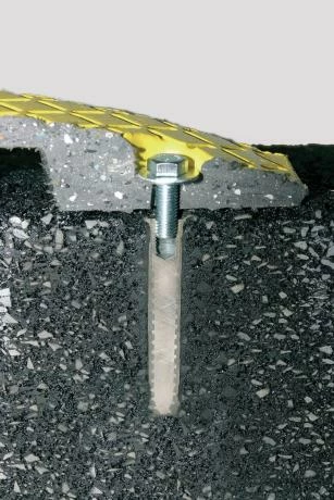Fixation mécanique à la résine pour asphalte. Bonne résistance au cisaillement.