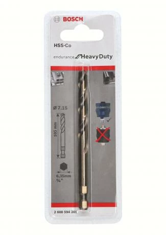 Foret de centrage HSS-Cobalt avec queue 6 pans 1/4, angle de pointe 135° et affûtage en croix.”