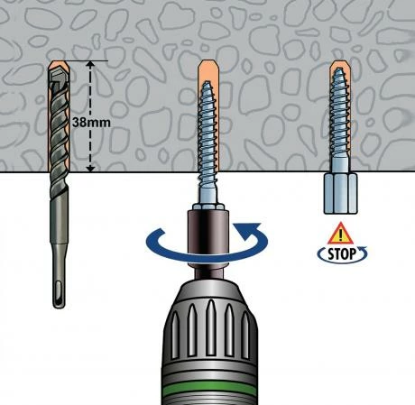 Réglage de la visseuse : couple fort / vitesse lente.